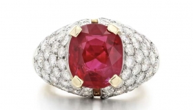 苏富比巴黎「精美珠宝」专场拍卖落下帷幕,一枚卡地亚红宝石钻石戒指以超最高估价8倍的惊人成交价,成为全场最受瞩目的传奇臻品。戒指以复古弧面(bombé)工艺打造,戒面