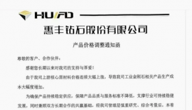 4月15日,人造单晶金刚石微粉制造业单项冠军企业——惠丰钻石发布《产品价格调整通知函》,通知函显示,由于上游核心原材料价格连续大幅上涨,导致惠丰钻石工业金刚石相关