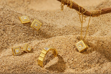 黛诺在业界的受关注程度可见一斑,“到年轻人中间去”是黛诺品牌脱胎于三磨所的第一个战略。 尽管面世刚一年,黛诺已推出“LINK”“金字塔”“生命之歌”“娇耳”等十余个系列产品,并在品牌推广方面动作频频。 品牌上线之初,黛诺就联动兰哲JERRY推出电音单曲《异能者》,与涂鸦艺术家JAY进行合作,将黛诺的异形钻元素融合在头盔、滑板以及黑胶唱片这三样与年轻人强关联的物品上进行涂鸦创作。