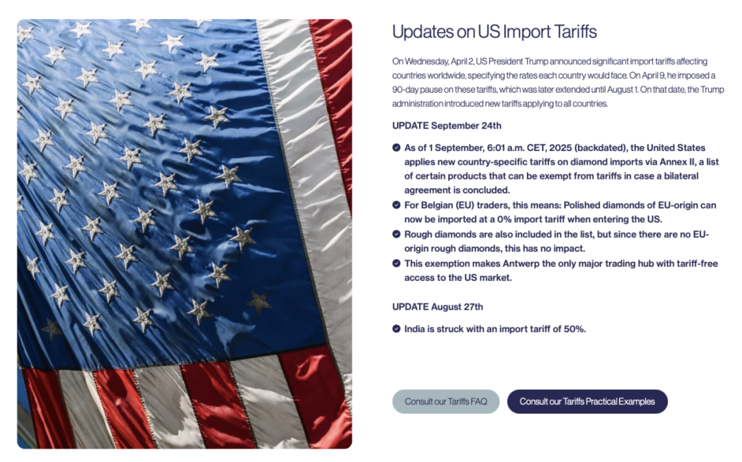 2025年9月24日,安特卫普世界钻石中心(AWDC)发布重要消息:在欧盟委员会与美国达成的新贸易协定框架下,原产于欧盟的成品钻石在进入美国时,可享受零进口关税待遇。 ...