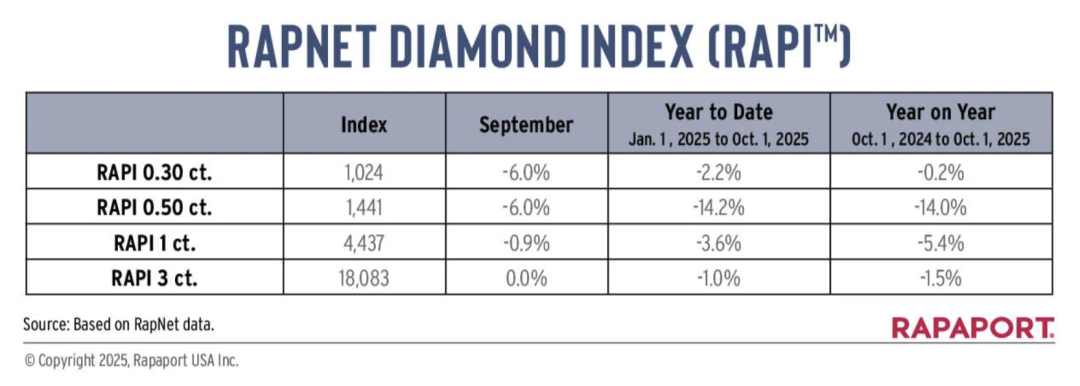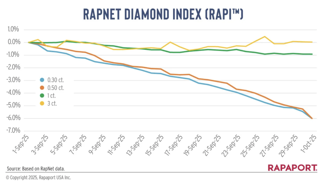 据 Rapaport 今天发布的2025年9月天然钻石裸钻价格报告显示,钻石价格再一次下降,其中1.00克拉以下的小颗粒圆形钻石降价较为明显。“美国关税政策等事宜,让市场持续笼罩在不确定性之中。 ... ...