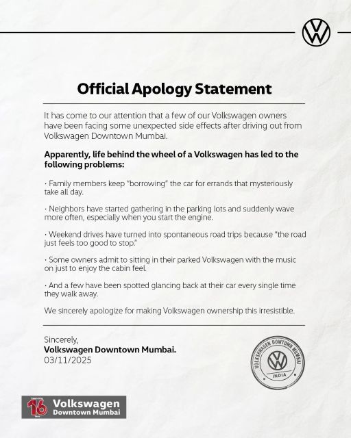 ![]() ▲ 来自孟买某大众经销商的“道歉信”