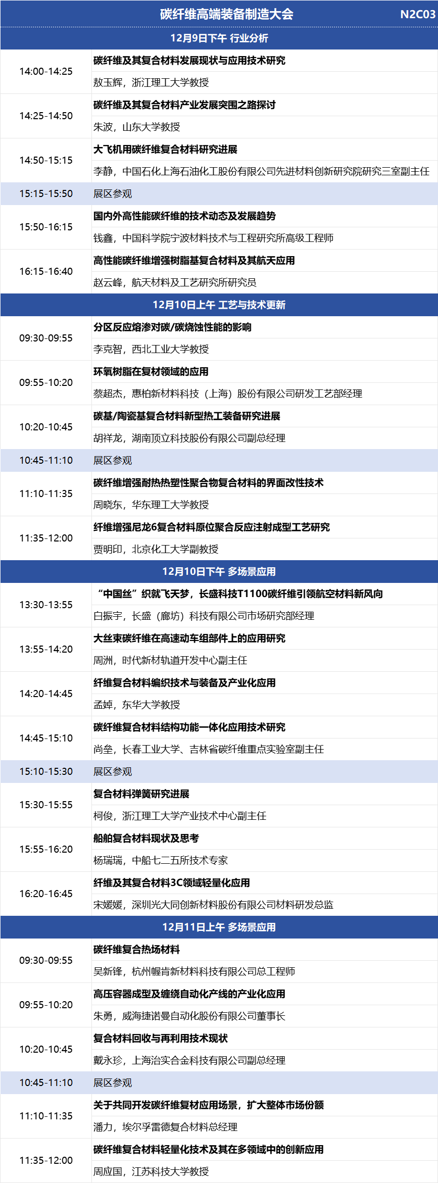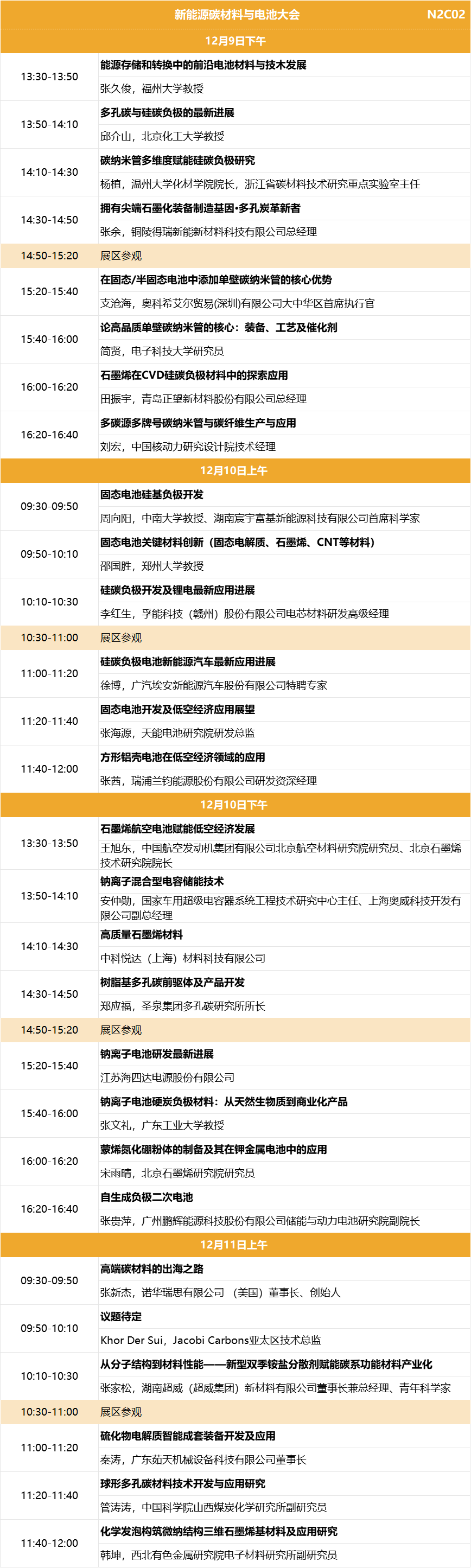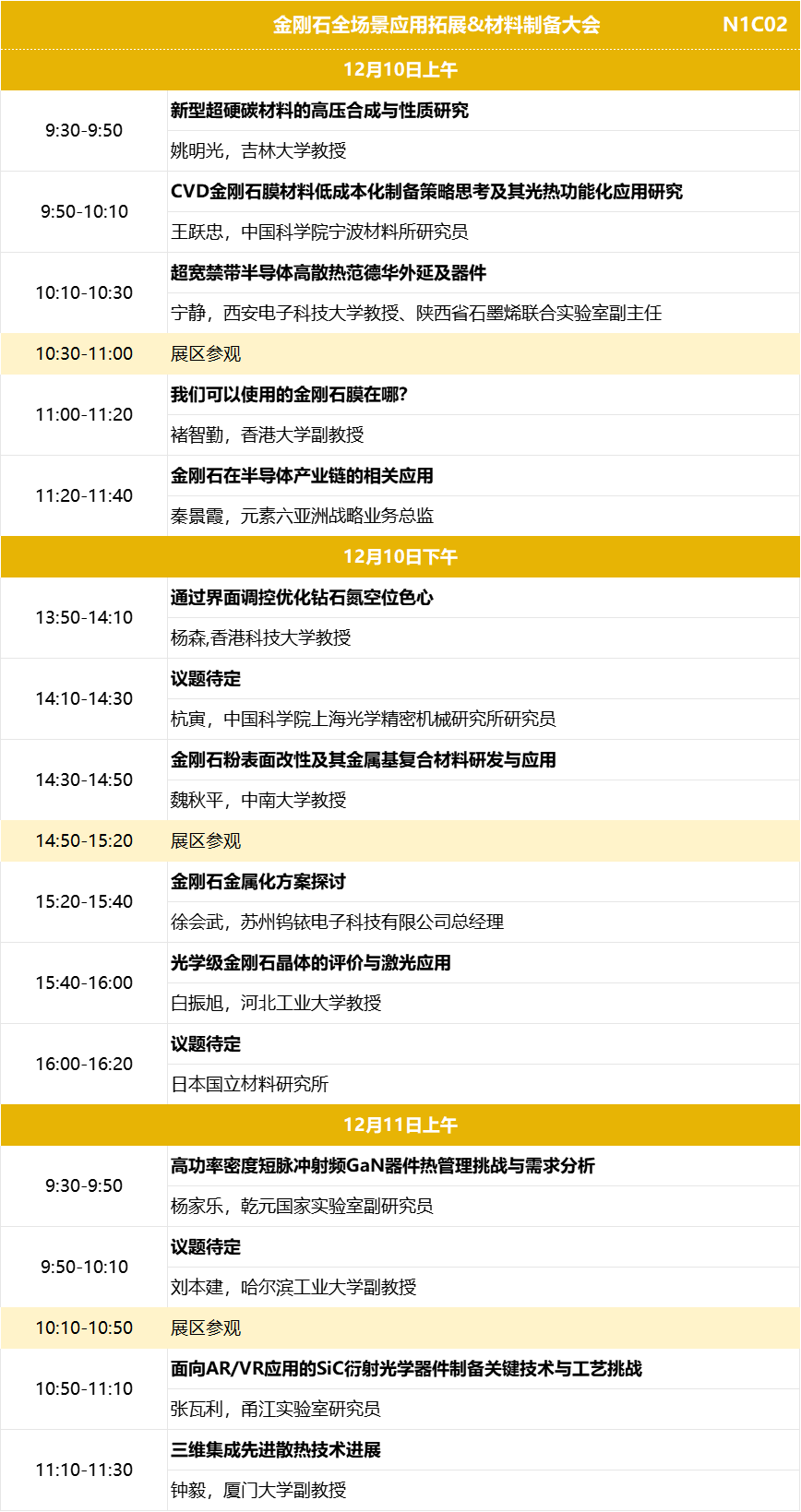 展会名称:Carbontech 2025第九届国际碳材料大会暨产业展览会 展会主题:材料创新驱动产业变革 展会时间:2025年12月9-11日 展会地点: 展馆分布:N1半导体碳材料馆、N2能源与装备碳材料馆 应用大会:2025金刚石年会(金刚石全场景应用拓展&材料制造大会、超精密加工与制造大会)、碳纤维高端装备制造大会、新能源碳材料与电池大会 同期活动:新品发布、供需对接、科研成果展示、应用产品展示、培育钻石看货会、专家团巡展...... 组织机构 名誉主席:薛群基,中国工程院院士 主办单位:DT新材料 联合主办:中国超硬材料网 协办单位:金刚石激光技术及应用协同创新中心、碳纤维研习社、铭炭网活性炭 支持单位:CVD Diamond Film Group、北京石墨烯研究院有限公司、重庆市石墨烯产业技术创新联盟、广州钻石交易中心、上海钻石行业协会、国际粉体检测与控制联合会工业应用委员会、湖南省新材料产业协会、清华大学天津高端装备研究院、深圳市龙岗区珠宝行业协会、陕西省碳/碳复合材料工程技术研究中心、西北工业大学碳/碳复合材料研究所、甬江实验室、中南大学炭/炭复合材料研究所、中国石墨产业发展联盟、中关村天合宽禁带半导体技术创新联盟、浙江省半导体行业协会、中国材料研究学会超硬材料及制品专业委员会、河南省培育钻石交易中心、中国地质大学(北京)郑州研究院、江西远东电池有限公司、国家车用超级电容器系统工程技术研究中心、上海奥威科技开发有限公司、上海碳纤维复合材料创新研究院 合作媒体:DT新材料、DT先进电池、DT半导体、DT钙钛矿、DT新能源、复材应用技术网、复合材料前沿、复合材料力学、高分子科学前沿、化工仪器网、化合物半导体、科学桥、沥青基碳材料、锂电前沿、培育钻石网、清新电源、石墨盟、先进半导体产业集群、先进电池材料产业集群、芯师爷、湾区半导体产业生态博览会、五会六展、上海有色网、协创微半导体、亚洲氧化镓联盟、炭碳论谈、ACT半导体芯科技、材料汇、材料分析与应用、电池能源与技术、碳纤维链、硅碳之家、南墅石墨矿、织物增强视界、芯半导体前沿 展馆平面图